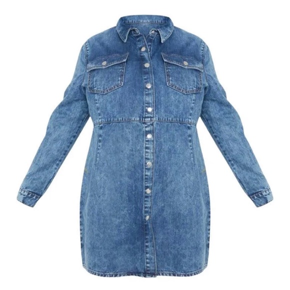 Super cute denim dress snaps up the front and snaps on the sleeves nice heavy weight denim can also be worn open as a shirt/jacket