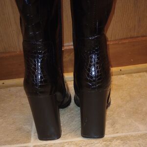 🆕🤠👢Pretty Little Thing Black Croc Knee High Boots