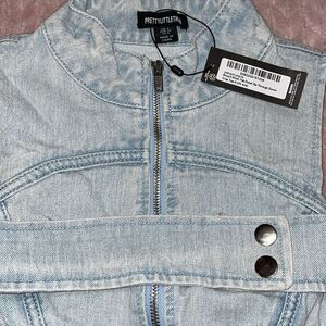 Pretty Little Thing Bleach Wash Tab Detail Zip Through Denim Crop Top