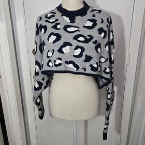 Pretty Little Thing Cheetah Print Cropped Oversized Sweater Navy/gray