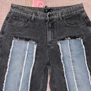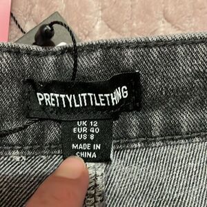 Pretty Little Thing Washed Grey Double Layered Denim Straight Leg Jeans