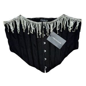 Women’s size 14 Pretty Little Thing Black Diamanté Fringe Detail Corset