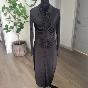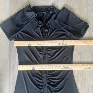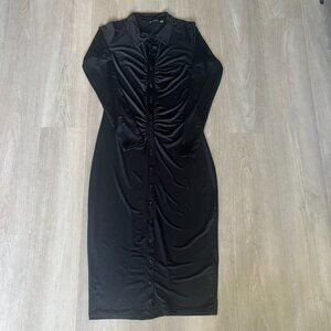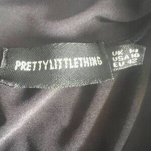 Pretty LittleThing Womens Black Ruched Midi Dress Sz 10 Cocktail Dark Academia