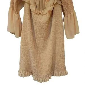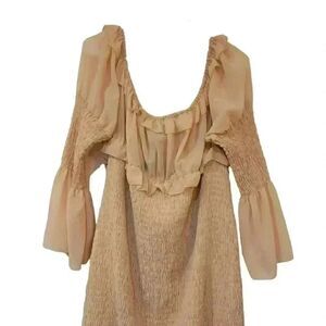 Pretty Little Thing Women's Stone Ivory Chiffon Shirred Body Con Dress NEW