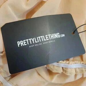 Pretty Little Thing Women's Stone Ivory Poly Chiffon Shirred Body Con Dress NEW NWT sz 22 US 26 UK