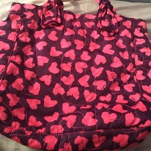 This oversized, heart-print nylon tote features logo quilting and an enameled logo plate. Patch side pockets. Knot detail at double handles. Magnetic main compartment closure. Logo-lined interior features zip pocket and 2 patch pockets.