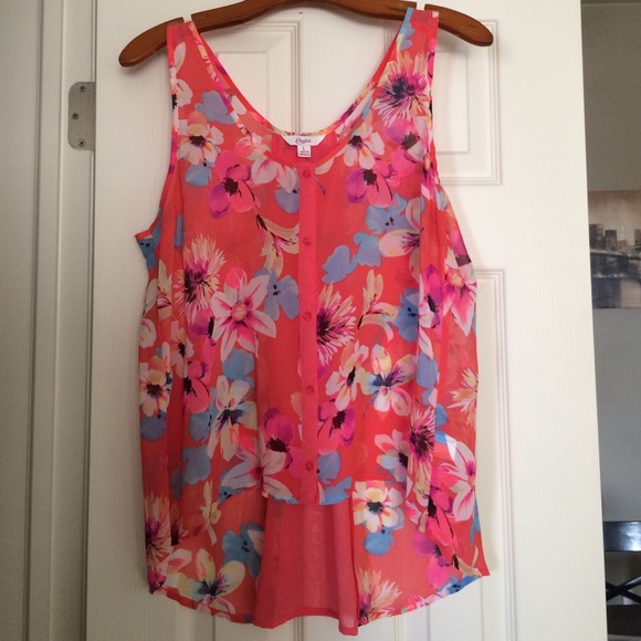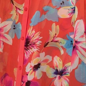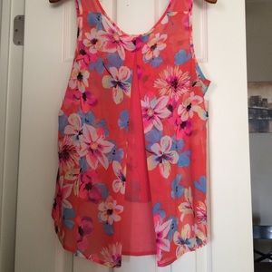 Polyester semi-sheer hi-lo top. Floral. Worn several times.