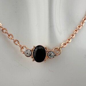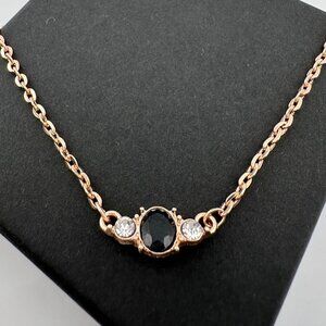 Simple yet beautiful rose gold plated necklace with natural Oval Sapphire with 2 and crystals (one centered on each side). Rose Gold overlaying brass. 18" Chain.