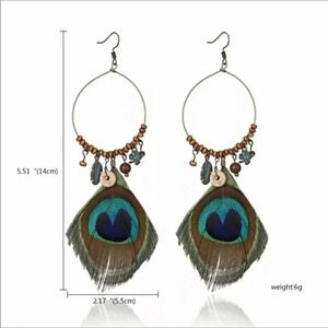 Pretty Peacock Feather and Charms Drop Earrings NWT