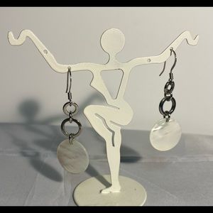 Comes with a pair of earrings with purchase. Dangling pearl circles with silver rings.