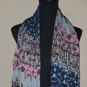 This pretty sheer scarf is made off 100% rayon. Multi-colored scarf, in great condition