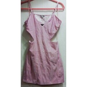 Pretty Pink Drip Demeanor Mini Glitter Dress Spaghetti Straps Lined Large NWT