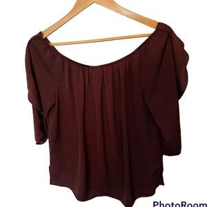 Super pretty plum color blouse! Like new, can be worn on or off the shoulder, size medium. 40” bust, 22” length
