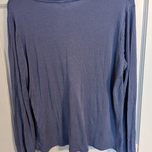 This lovely long-sleeved T-shirt from Pretty Rebel comes in a pretty bluish-gray color and reads: #Quarantine & Chill. Super soft! EUC. 95 percent rayon, 5 percent spandex. The ladies size large, when lying flat, measures 23 inches across at the armpits, is 25 inches long and sleeves drop 25 inches from the shoulder.