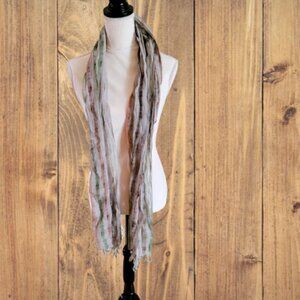 Pretty Scarf in Gray with Multiple Colors and Fringe Edges
