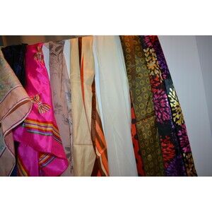 Vintage scarves in excellent condition. The lot of ten scarves includes lovelies from Japan, Italy, solids, flowers, prints, cotton, nylon and others. A beautiful lot for keeping, sewing or collecting. Great for creating banners, gift wrapping, buntings, display, home decor too. The sheer, long, skinny, square, and other shapes are fabulous. The perfect accessory or addition to your vintage clothing collection. Can be worn on neck, waist, in hair or hang on your fave purse. This is the actual lot. Includes a beautiful Jafra.