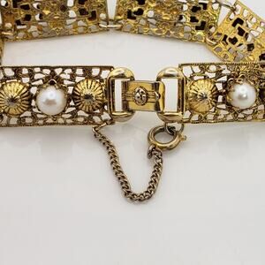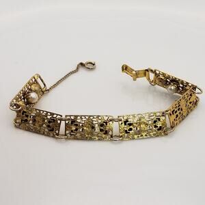 Pretty Seashell and Pearl Gold Filligree Chain Link Bracelet