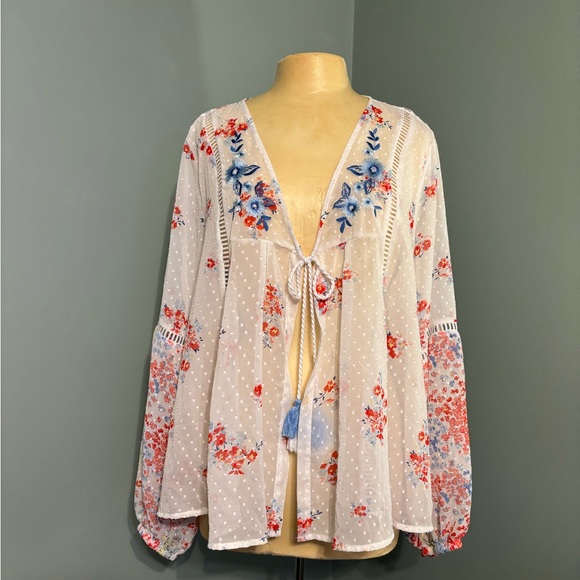 Pretty printed sheet cardigan with tassel tie size XL.