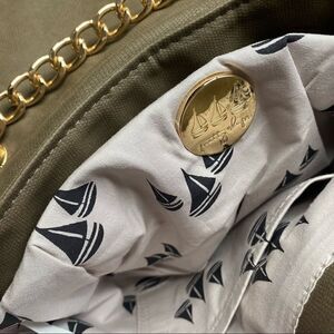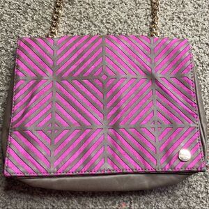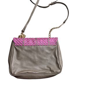 Pretty Ships Womens Stripe Flap Purse Taupe Pink Gold
