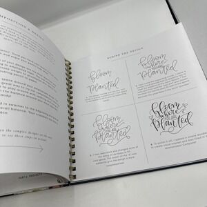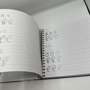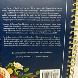 Pretty simple lettering, modern calligraphy, and hand lettering for beginners. By Whitney Friendswood. This is a hardcover book spiral bound. The book doesn't appear to be written and anywhere from front to back that I have seen.