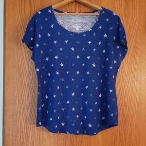 Pretty Sonoma Blue T-Shirt with White Stars Sz L