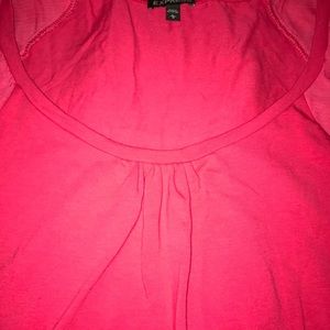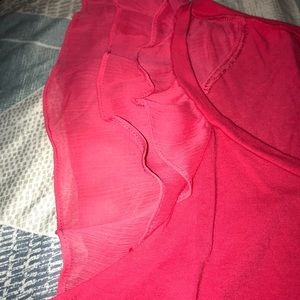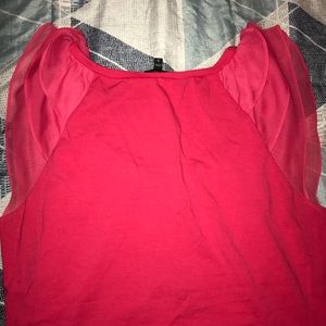 Ladie’s cap-sleeve top with fluttery details at shoulders. Scoop neckline with ruched detailing in middle. Tiny bleach stain (see last photo) on front of shirt. Not noticeable but like to be truthful in description! 🙂 beautiful color and perfect for spring! Dress it up or dress it down!
