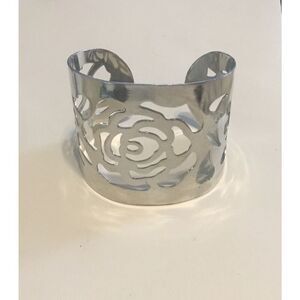 Pretty Stainless Steel Wide Cut Out Rose Design Cuff Bracelet