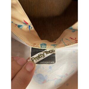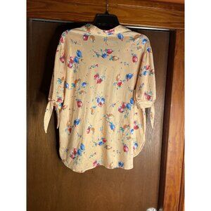 Pretty Tops Women's Vintage 70s Blouse Floral Short Sleeve Tie Yellow Spring XL