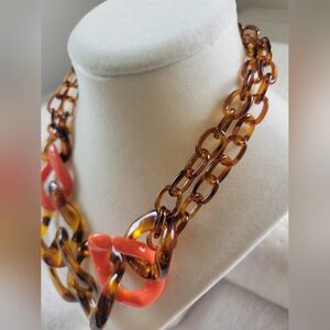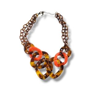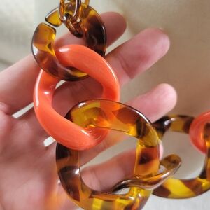 Pretty Tortoise/Orange Chunky Chain Link Statement Necklace