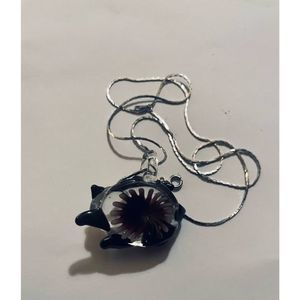 Pretty clear glass-blown large vintage kitty necklace with a flower in the center. Very pretty vintage piece. Comes with a silver chain. NWT. #kittynecklace, #kittyjewelry, #catnecklace, #catjewelry, #glassnecklace