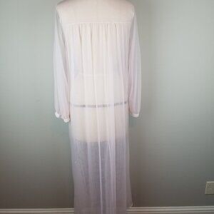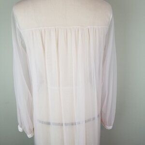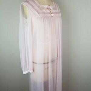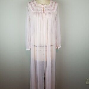 Pretty Vintage 1950's Long Chiffon Pale Pink Robe with Lace Detail
