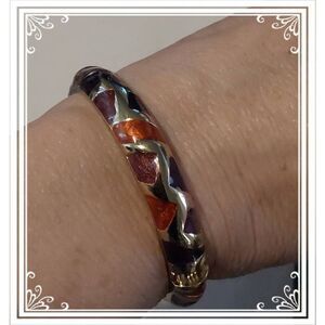 Pretty Vintage Goldtone Multi-Color Enamel Hinged Bangle Bracelet