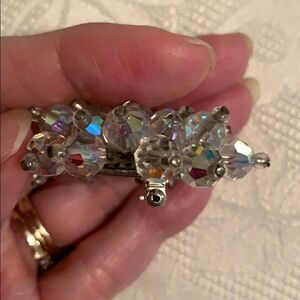 Vintage 60s crystal bead aurora borealis round brooch Excellent vintage condition 2” across