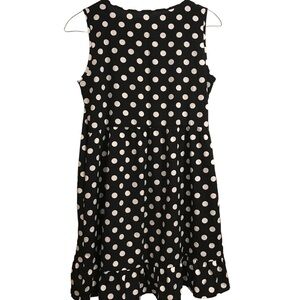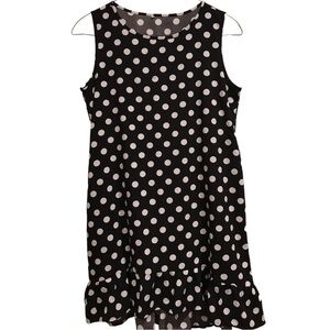 Pretty Woman Black White Polka Dit Tank Dress with Pockets Ruffle Hem Detail L