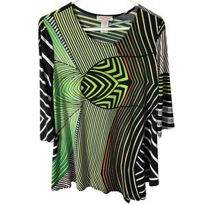 Step out in style with this vibrant Pretty Woman tunic! Its artsy geometric design and asymmetrical cut create a unique, boho-chic look. Perfect for adding a pop of color and personality to your wardrobe.