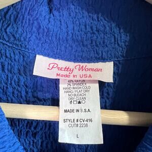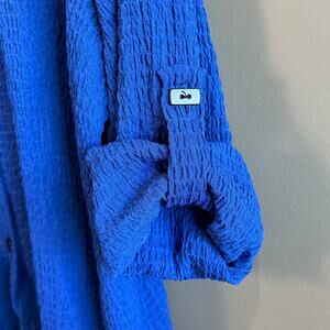 Pretty Women Blue Button Up with Roll Tab Top Blouse with Buttons Size L