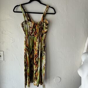 Lightweight, stretchy, and flowy fabric, perfect for warm weather and vacations (exact fiber content not visible on inner tag)