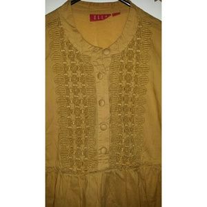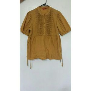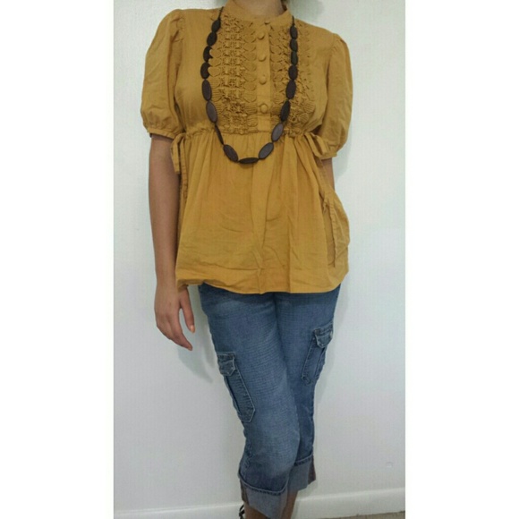 This bright mustard color blouse is sure to make a statement. You can wear it for a nice lunch or a day in the city. It's very pretty as well as comfortable. The details are also very nice. Barely worn and in great conditions.