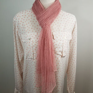 Blush pink mesh scarf. Time to accessorize your Fall wardrobe with this pretty in pink mesh scarf. It is a long scarf with frayed edges. Great condition.