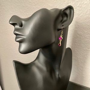 Pretty dangle earrings, gold tone with pink and purple stones.