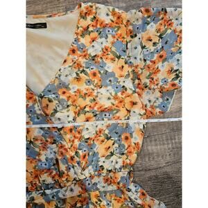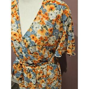 Pretty garden wrap ruffle dress womens xxl plus 2x orange cottage floral midi