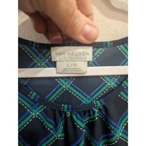 Pretty geometric striped shell/tank in navy & green by Van Husen size Large