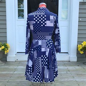 If, like me, nothing brings you quite as much joy as spinning around in a dress – this is for you. FULL circle skirt on this gem. Circa Early 70’s, as the pattern and collar clearly give away, but with overall 50’s vibe in silhouette –Button front, pointed collar, long sleeves. Homemade, Well -constructed. Minor staining as seen in photos – very much camo-ed by the wild print.Cotton blend. Gentle Wash-line dry. B-43 W-26. Full skirt, L-40”