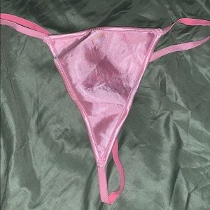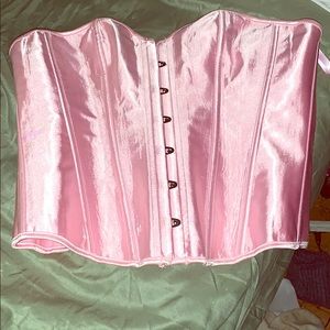 Pink corset, hook front, lace back, with matching g string panties. New/never worn. Equivalent to size XXL