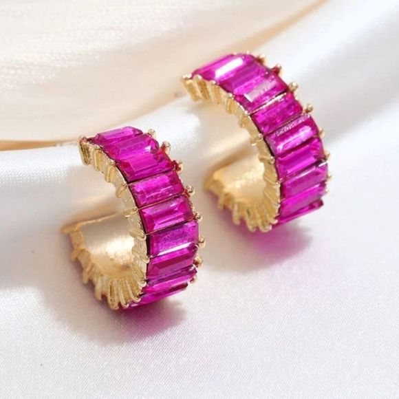Pretty in Pink Stone Huggie Hoop Earrings