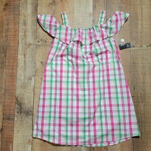 Add a pop of playful charm to your wardrobe with this Crown & Ivy dress! Featuring a delightful pink, green, and white plaid pattern, this off-the-shoulder beauty is perfect for picnics, brunches, or sunny strolls. The ruffle neckline and adjustable straps give it a flirty yet functional vibe, while its lightweight fabric keeps you comfy and stylish all day long. New with tags, this dress is ready to turn heads wherever you go!