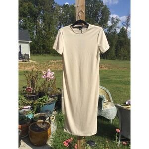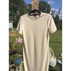 Pretty little thing ribbed crew neck midi stretch dress size 10 NEW cream beige
