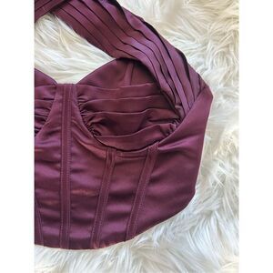 Pretty little thing burgundy corset wraparound sexy crop top size 0