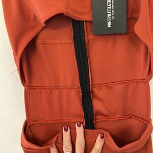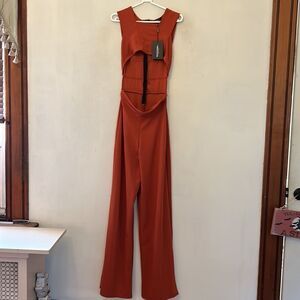 Pretty little thing rust crepe square neck cut out jumpsuit Size 6 New