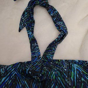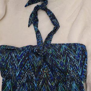 Blue and green zig zag pattern in this pretty bandeau one piece with middle halter tie. Never worn!
